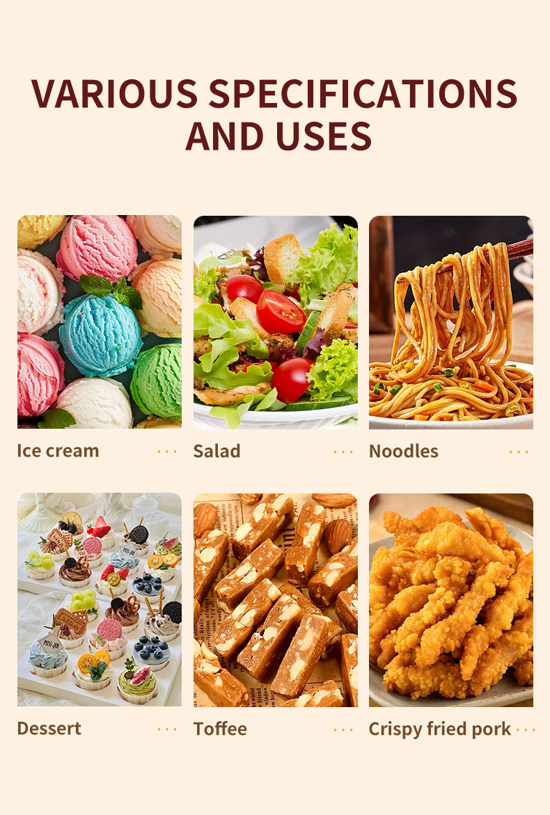| Use | Cupcakes, Muffins, Sample Portions, Tiramisu, Scones, Jelly, Nuts, Sauce, Appetizer | ||||||||