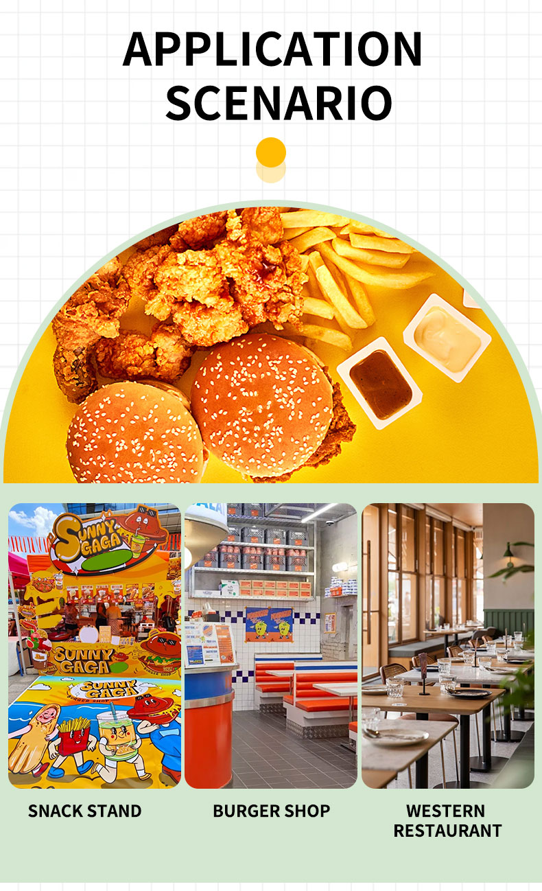 | Use | Burgers, French Fries, Chips, Coffee, Tea, Grilled Sausages, Sushi Platter, Desserts | ||||||||