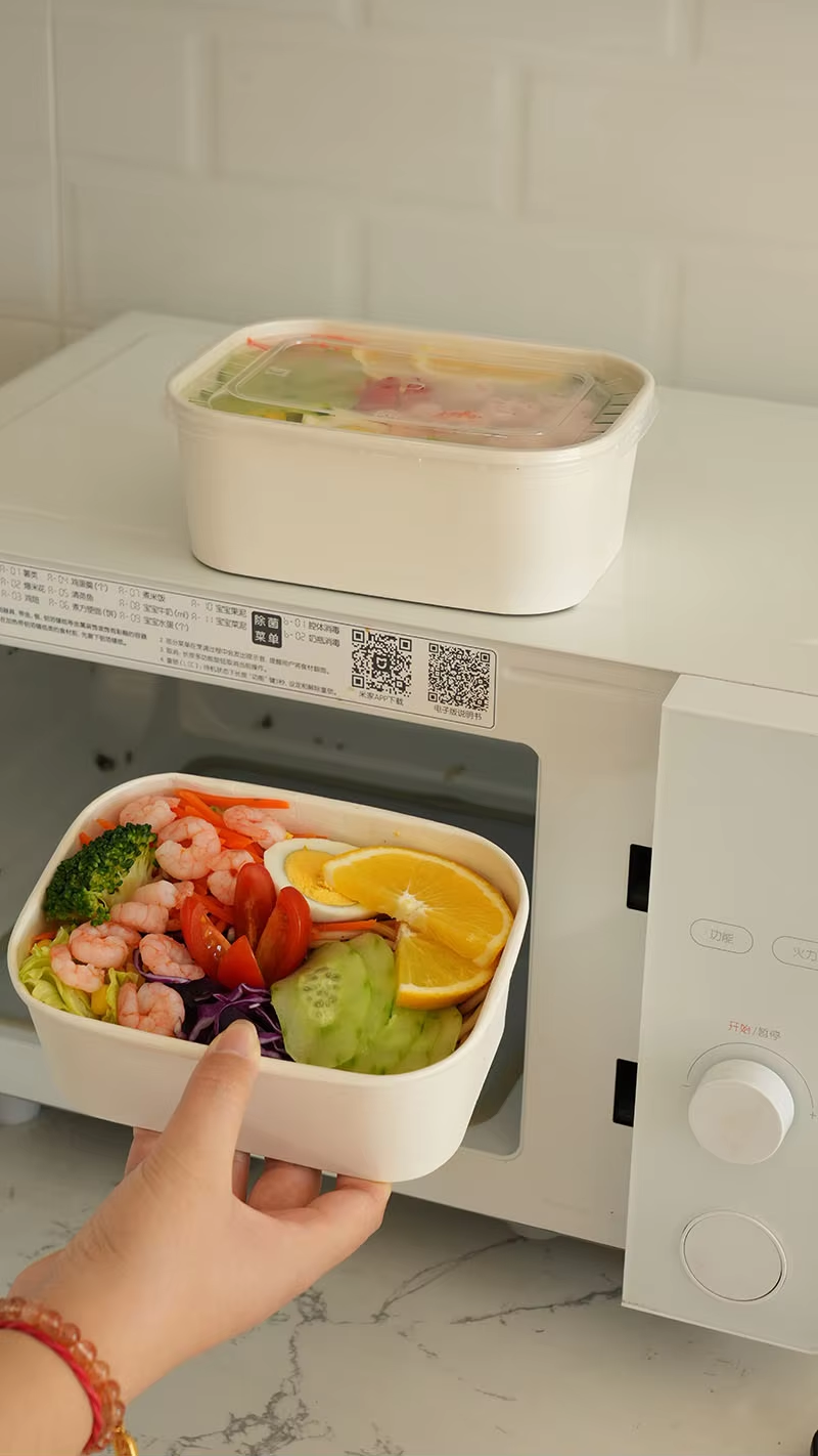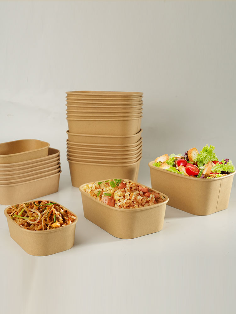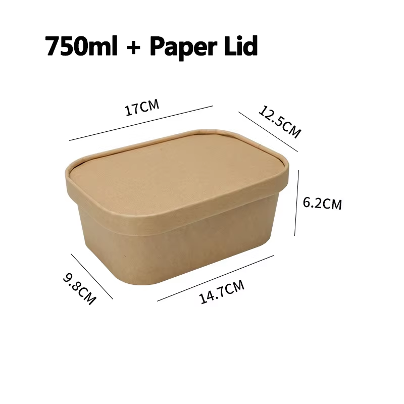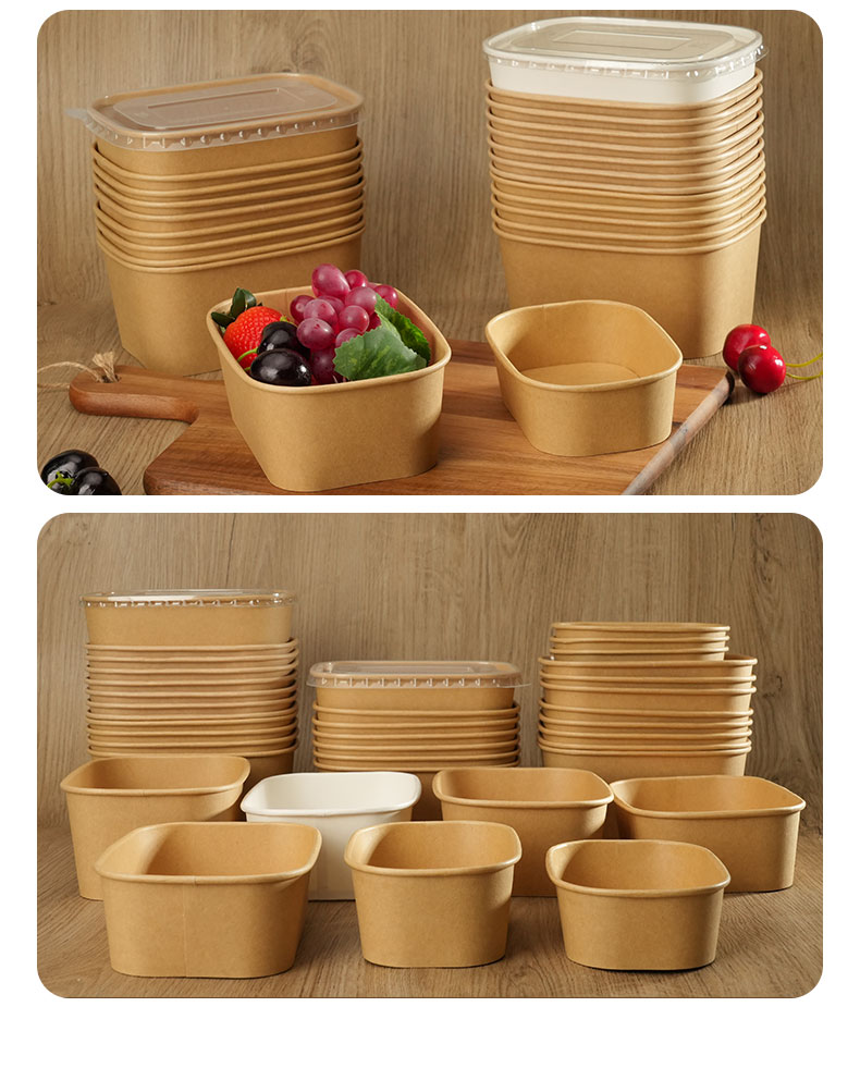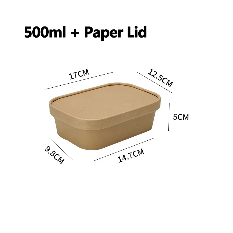 Disposable Kraft Paper Bowls Food Containers with Lids – Bulk 500ml to 1000ml Rectangular Bowls for Takeaway