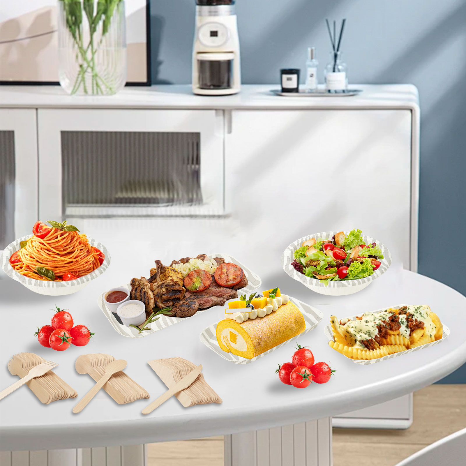 | Size | Wooden Cutkery | Paper Plates | Paper Dishes | Paper Bowls | |||||