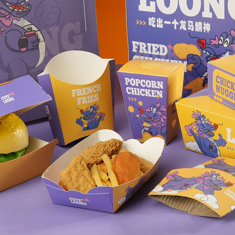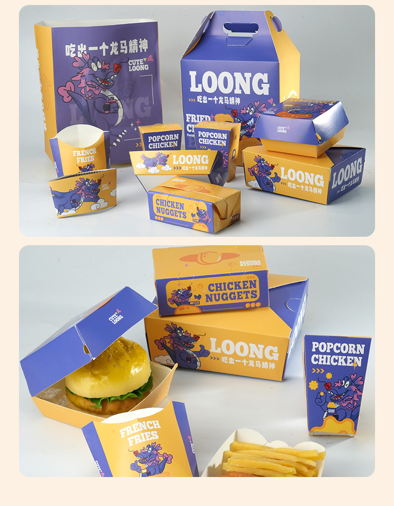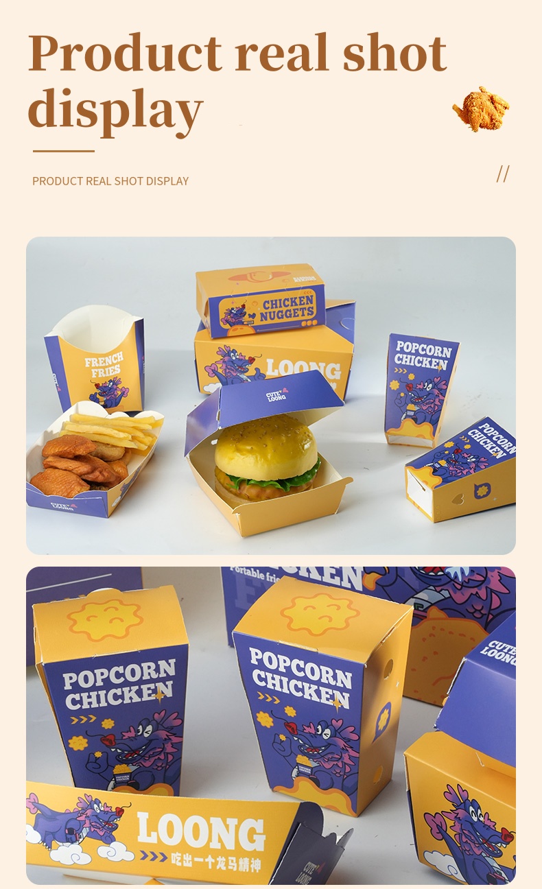 Take Away Food packaging Boxes Hamburger French fries popcorn chicken nuggets fried chicken boxes