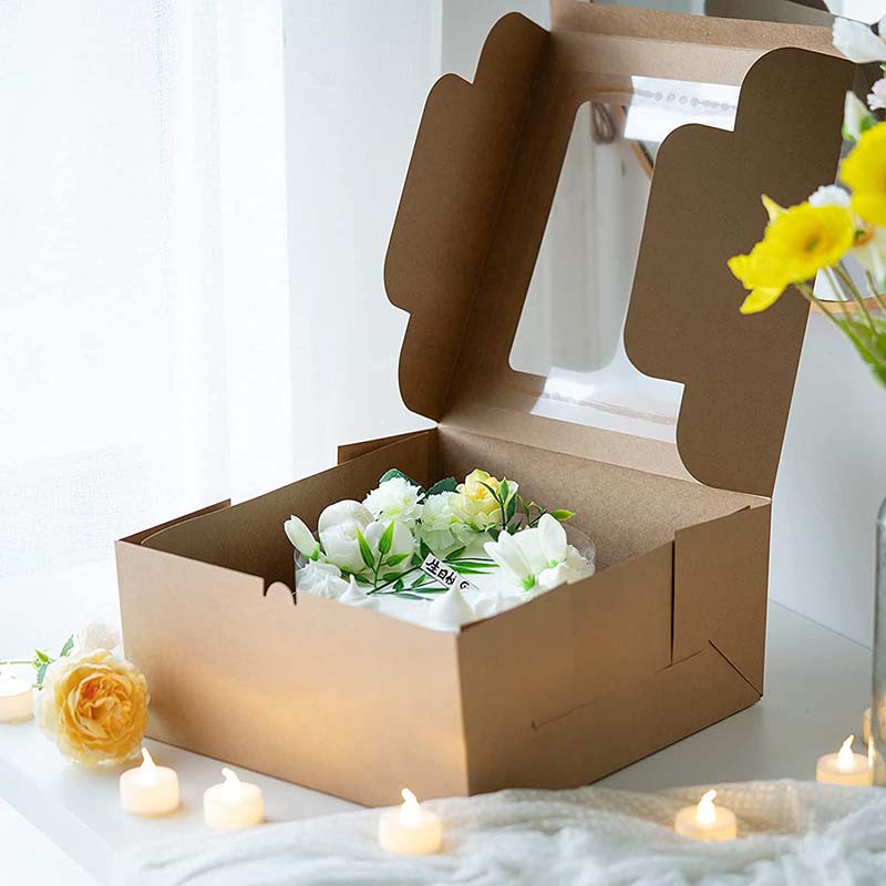 Uchampak – Bakery Boxes with Window Small Cake Box Kraft Paper Treat Boxes for Pastry, Cupcakes, Pie, Donuts2