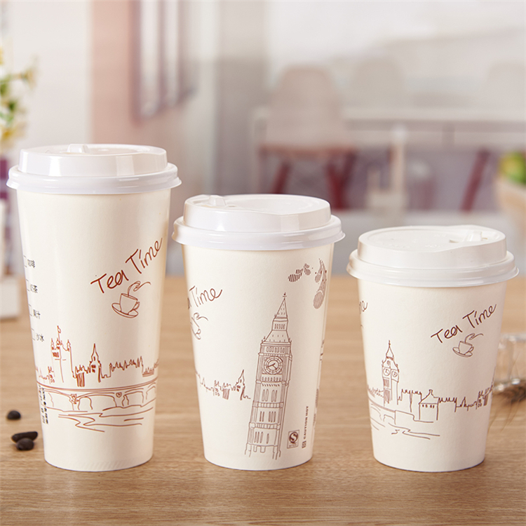 Biodegradable 8/12/16 Oz Beverage Coffee Cups Single Wall Paper Cups with Lid