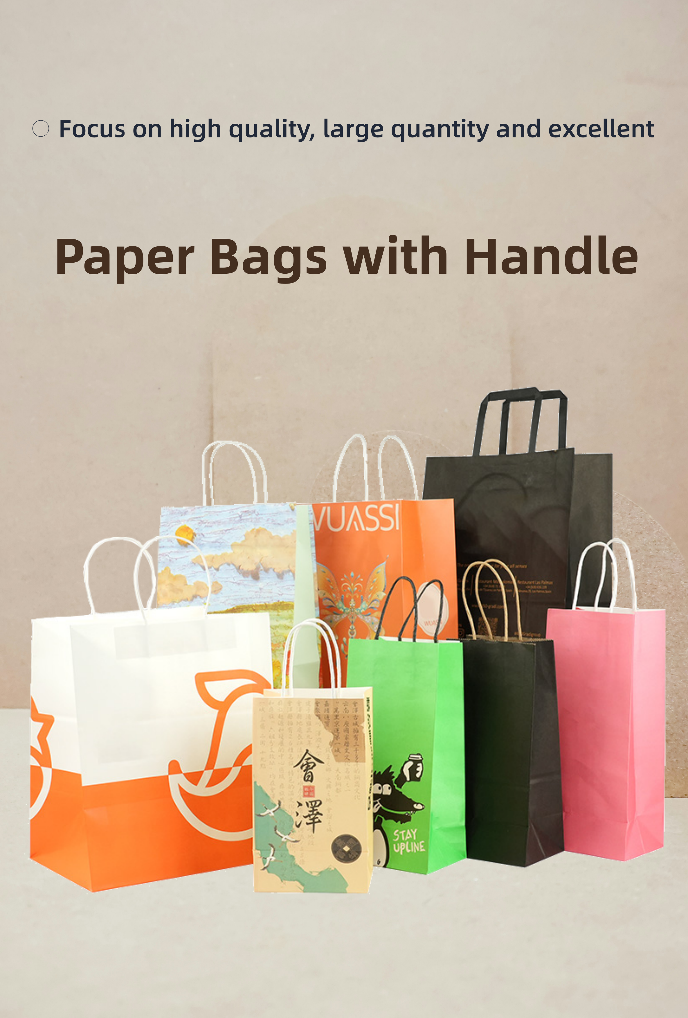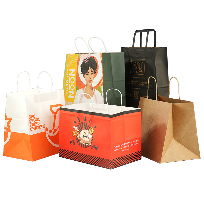 Uchampak Bulk Custom Paper Bags – High-Quality Kraft Handles for Food & Takeaway