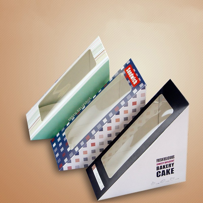 Custom printed triangle sandwich paper packaging box with window can maintain strong market competitiveness for a long time, inseparable from the emphasis on talents and technology.In addition,product customization is welcomed warmly.