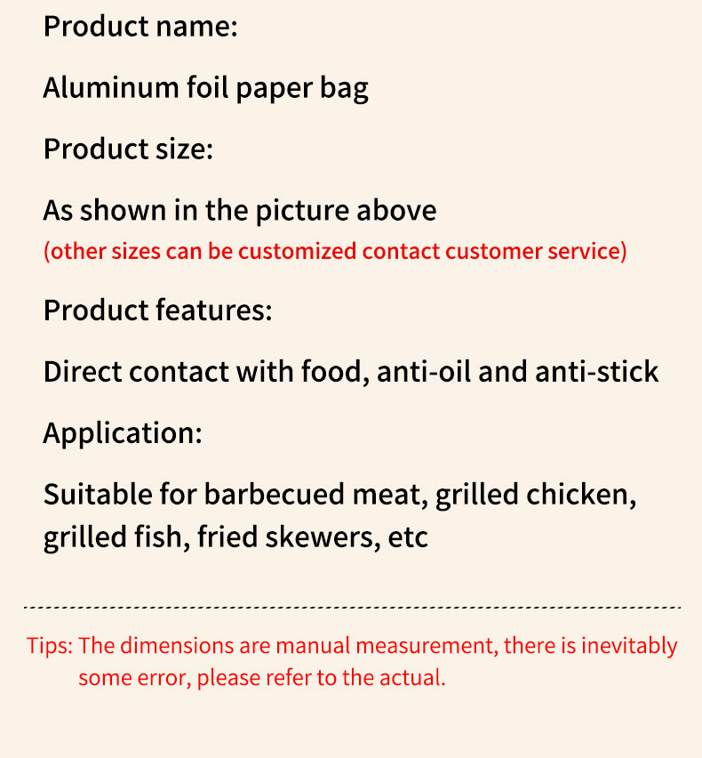 Item name Aluminum Foil Greaseproof Bag
