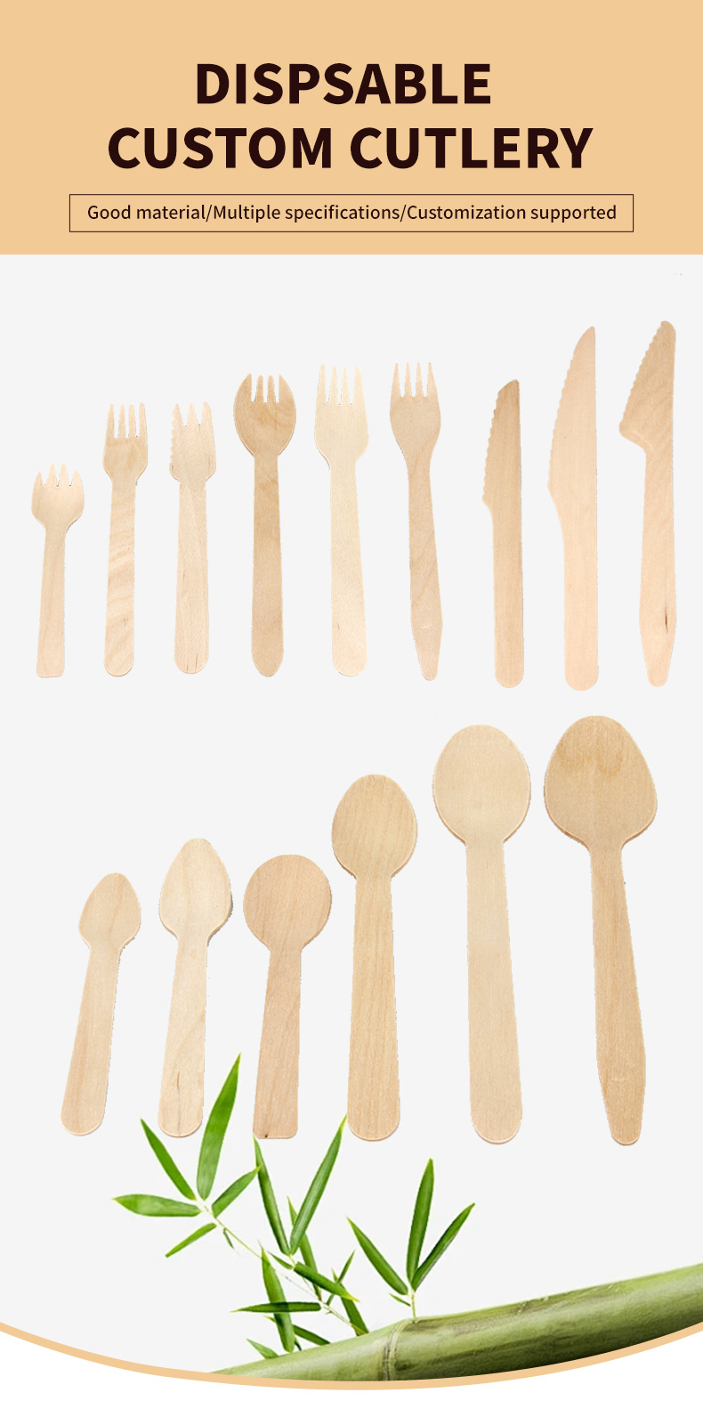 | Size | Wooden Knife | Wooden Fork | Wooden Spoon | ||||||||||